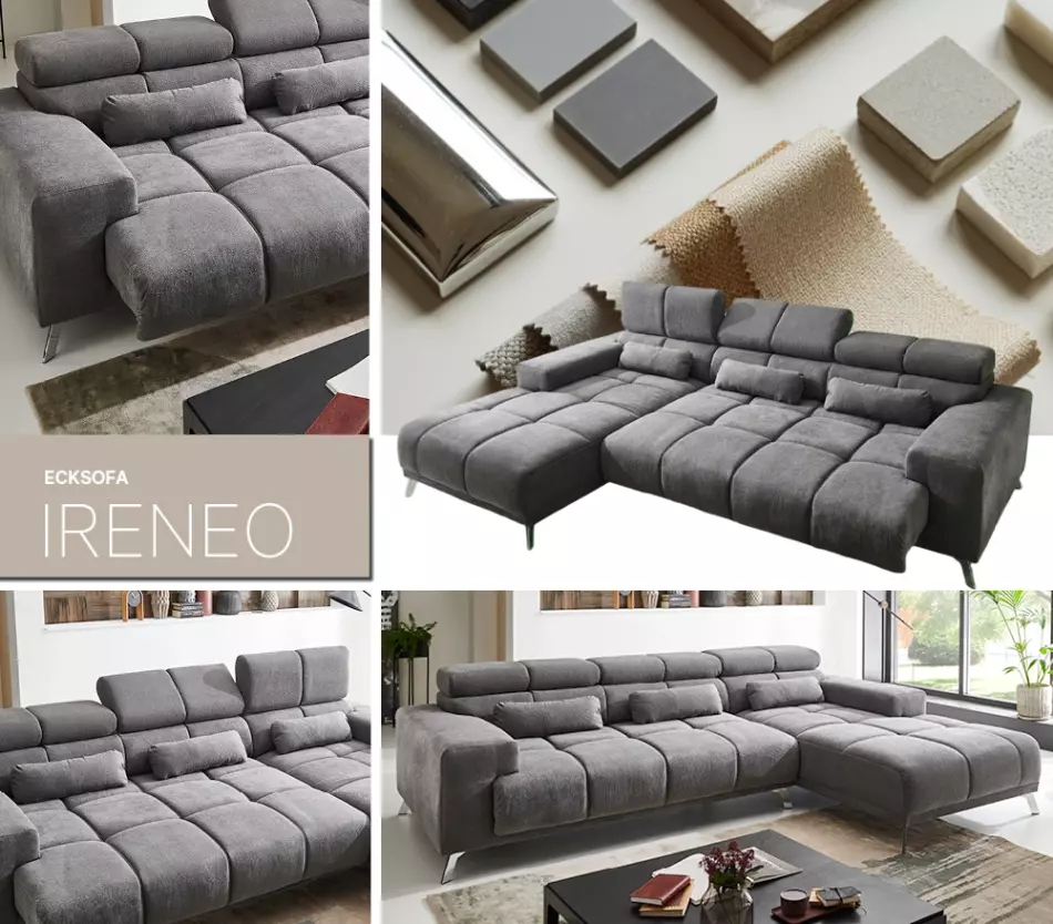 Ob als stilvoller Treffpunkt für Familie und Freunde oder als persönlicher Lieblingsplatz zum Zurücklehnen: Ireneo verbindet Design, Funktion und Wohnlichkeit auf besonders stimmige Weise. Ein Ecksofa, das Komfort nicht nur verspricht, sondern jeden Tag erlebbar macht.