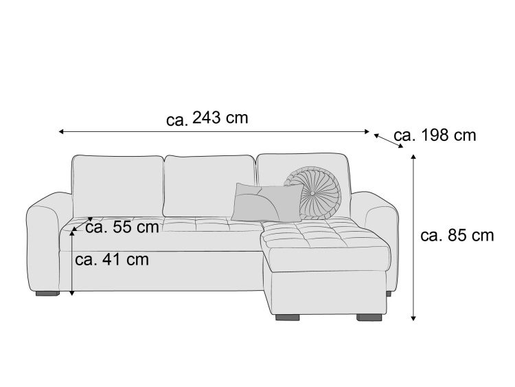 Das Ecksofa Harder IV vereint stilvolles Design mit praktischen Funktionen. Mit seiner integrierten Schlaffunktion und dem großzügigen Stauraum bietet es nicht nur einen hohen Sitzkomfort, sondern auch vielseitige Nutzungsmöglichkeiten für Ihr Wohnzimmer.