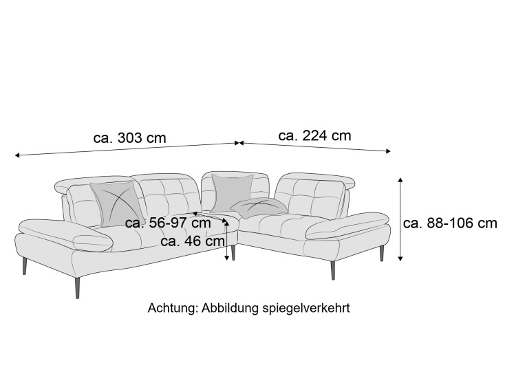 Das Ecksofa Minerva ist nicht nur ein Möbelstück, sondern ein Erlebnis des Komforts und der Funktionalität. Mit seinen vielseitigen Verstellmöglichkeiten und dem modernen Design ist es die perfekte Ergänzung für Ihr Wohnzimmer.