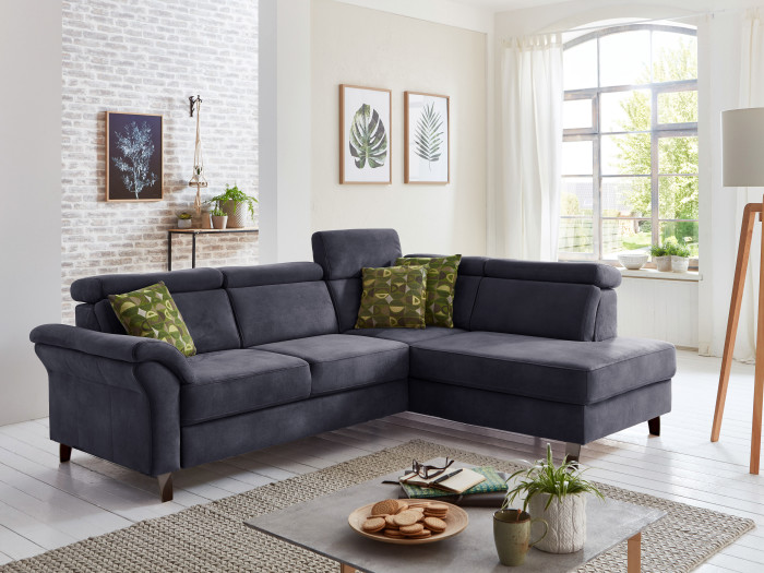 Durch die Breite von 245 cm eignet sich das Ecksofa für jeden Wohnraum, egal, ob groß oder klein. Entspannen Sie allein oder mit Freunden auf Ihrer optisch ansprechend und zugleich gemütlichen Couch Scandicci V. Für den optisch ansprechenden Gesamtlook sorgen die schlanken und zugleich eleganten Armlehnen und die dazu passenden Metallfüße. Wahlweise ist das Polstermöbelstück auch mit Schlaffunktion und/oder integriertem Bettkasten erhältlich. Diese Zusatzfunktionen eignen sich besonders gut, wenn Sie oft Gäste zum Übernachten empfangen, oder einfach zusätzlichen Stauraum benötigen. Ebenfalls erhalten Sie gegen einen geringen Aufpreis verstellbare Kopfteile, diese garantieren einen individuellen Komfort mit Gemütlichkeit auf höchstem Niveau.