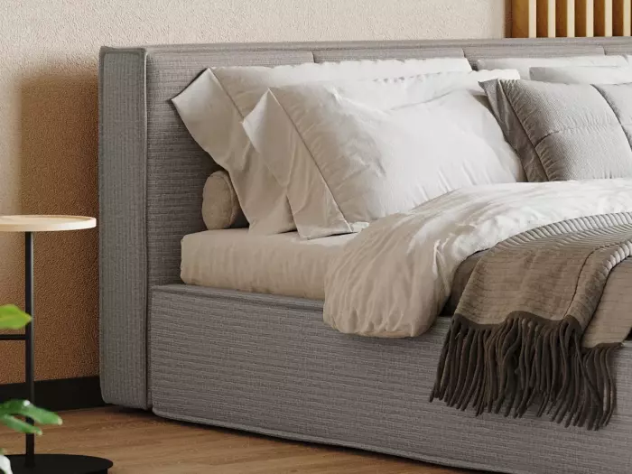 Der Stoffbezug verleiht dem Bett eine wohnliche Textur und fügt sich flexibel in verschiedene Farb- und Einrichtungsstile ein. Durch die wählbaren Bezugoptionen haben Sie die Möglichkeit, das Bett individuell an Ihren Raum anzupassen.