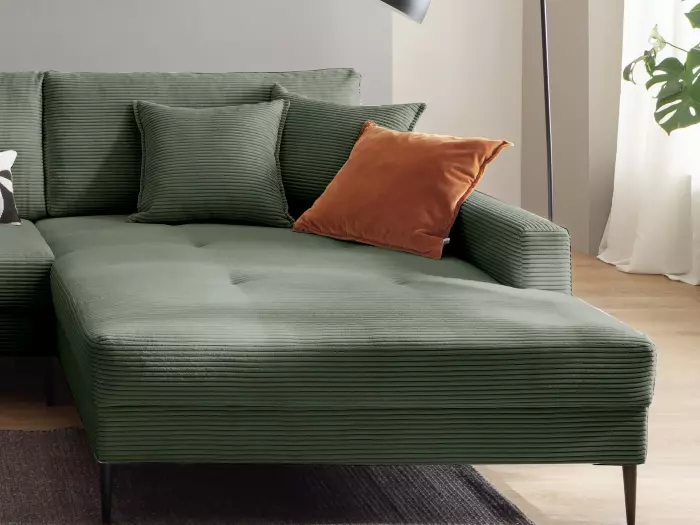 Hochwertiger Cordbezug: Der Bezug aus hochwertigem Cordstoff ist nicht nur optisch ansprechend, sondern auch äußerst angenehm im Griff. Zudem ist er pflegeleicht und strapazierfähig, sodass Sie lange Freude an Ihrer Wohnlandschaft haben werden.