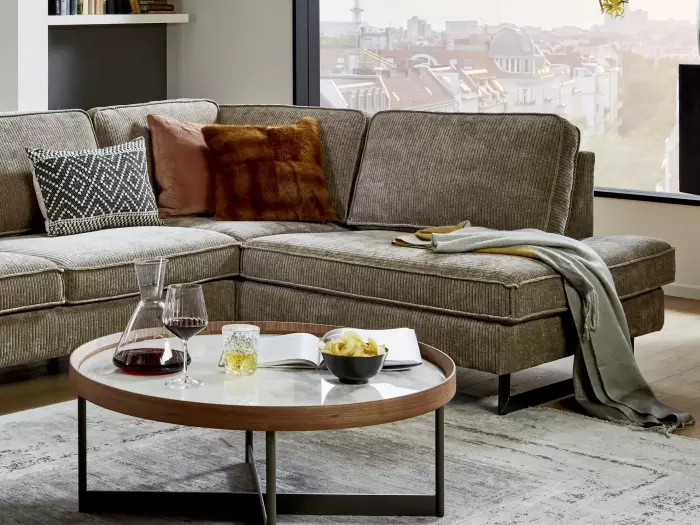 Die Wohnlandschaft Kellan VIII verbindet zeitgemäßes Design, hohen Komfort und einen trendigen Look. Mit ihrem modernen Cordbezug, der großzügigen Sitzfläche und der hochwertigen Verarbeitung wird sie schnell zum neuen Mittelpunkt Ihres Wohnzimmers.