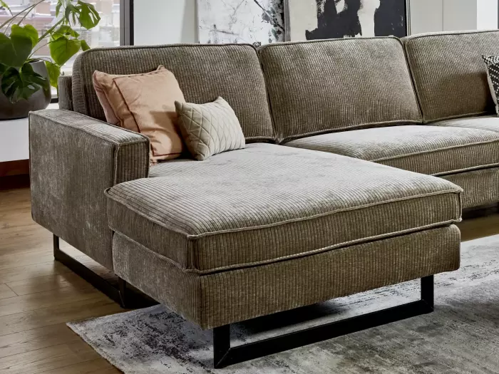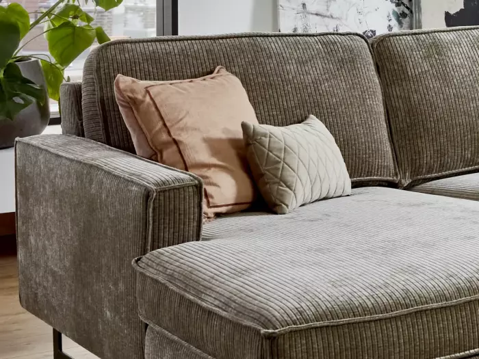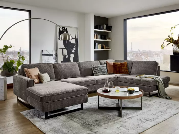 Die Wohnlandschaft Kellan VIII vereint stilvolles Design, modernste Materialien und hohen Komfort. Mit ihrem Cordbezug, dem stabilen Metallfuß und der großzügigen Bauweise ist sie die perfekte Wahl für ein gemütliches und modernes Wohnzimmer.