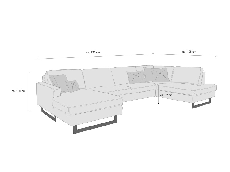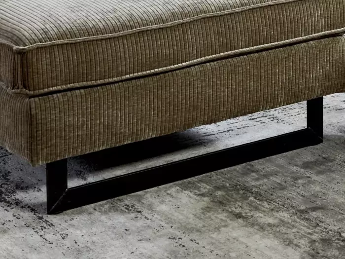 Der Metall-Kufenfuß verleiht der Wohnlandschaft eine leichte, moderne Optik, während die solide Polsterung für hohen Sitzkomfort steht – perfekt für entspannte Fernsehabende oder gesellige Runden.